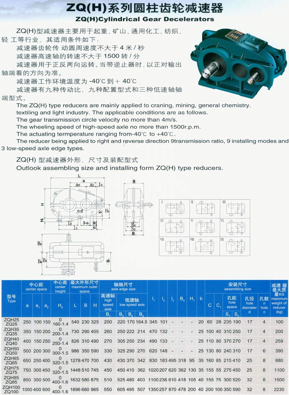 该减速机久经考验,价廉物美,广泛用于矿山、起重、运输、冶金、轻纺、化工、机械等行业。主要型号有:ZQ(JZQ)型、ZQH型、ZQA型、ZQD型、ZD(ZDH)型、ZL(ZLH)型、ZS(ZSH)型、ZSC,ZSC(A)型、ZSC(D)、LC、YTC、WD,WS,A型蜗轮蜗杆减速器。