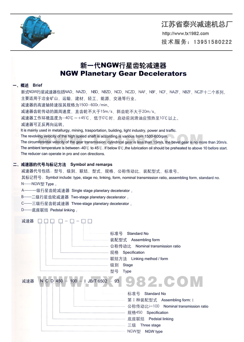 新式NGW行星减速器包括NAD、NAZD、NBD、NBZD、NCD、NCZD、NAF、NBF、NCF、NAZF、NBZF、NCZF十二千系列。