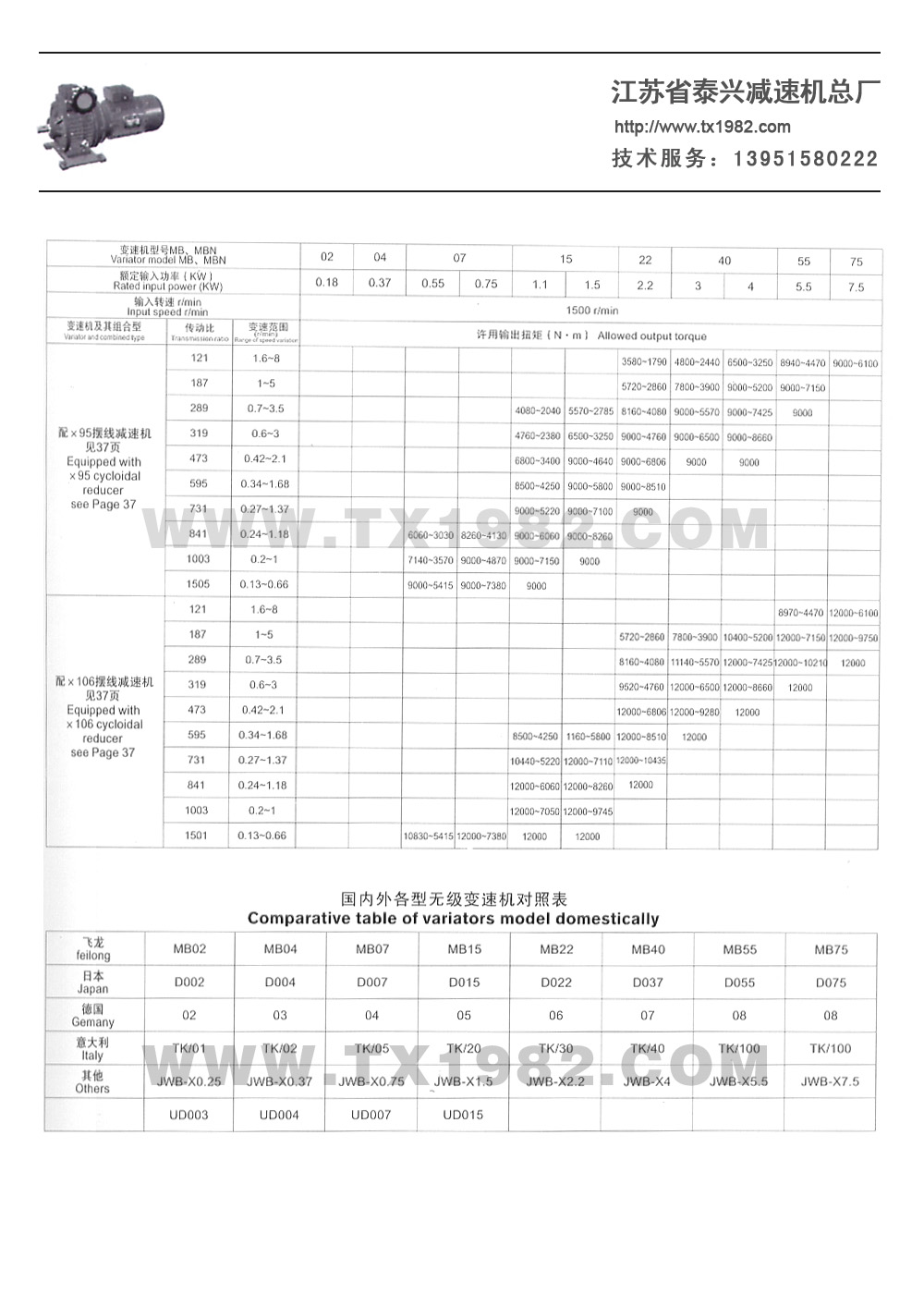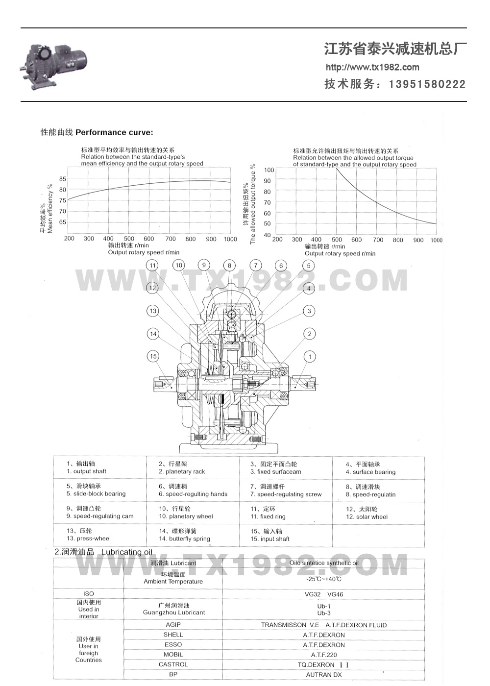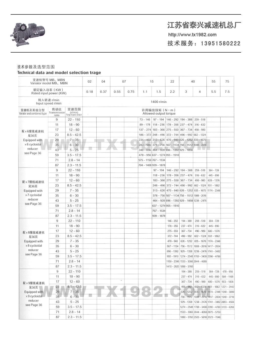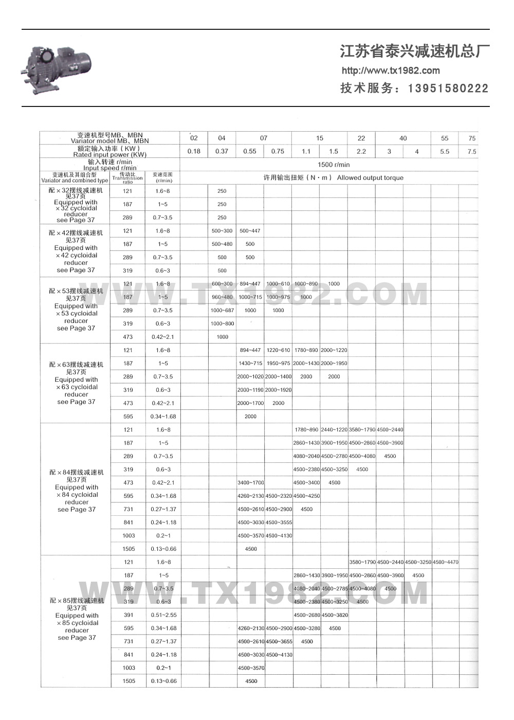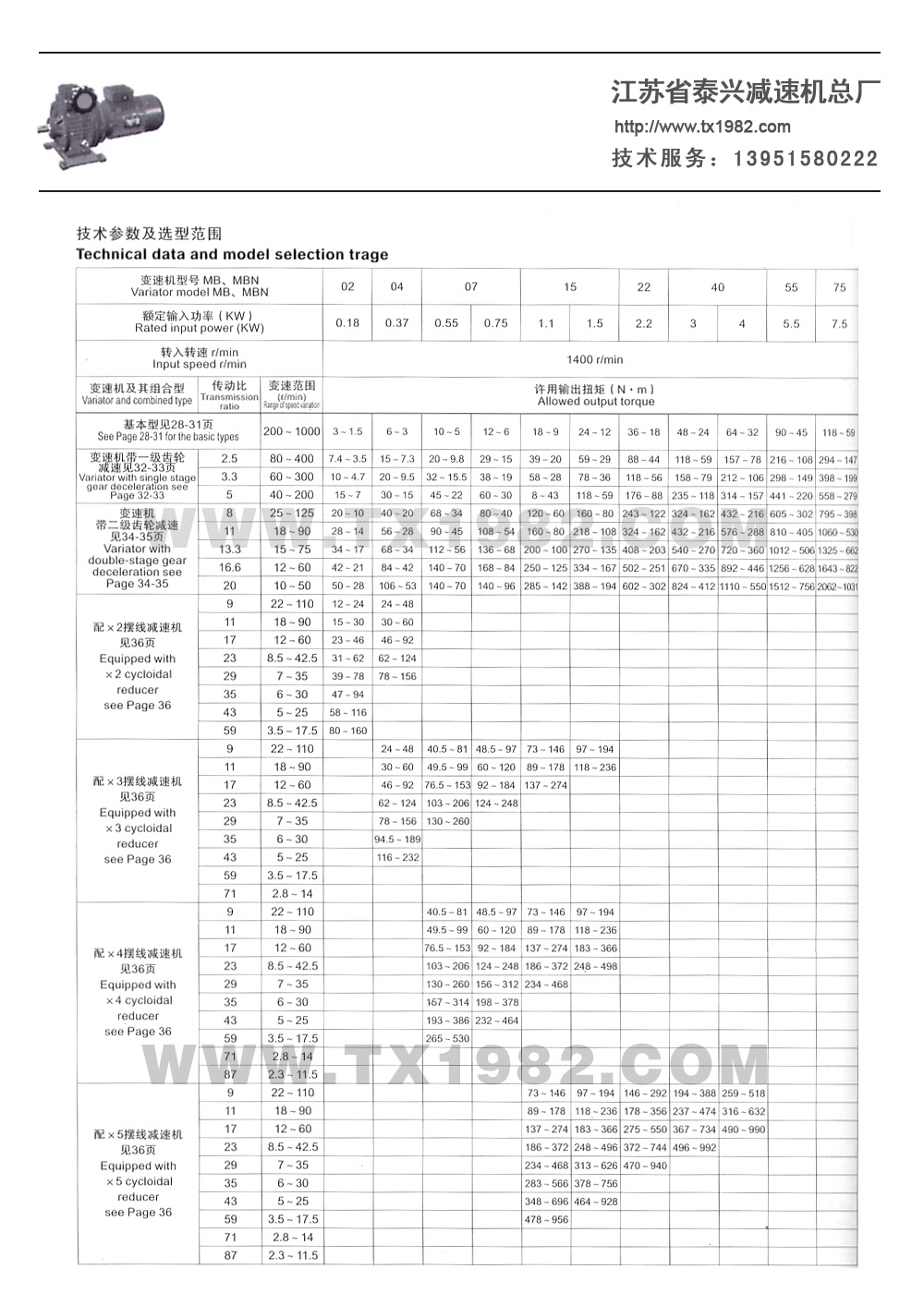 3.变速机带二级齿轮减速(i=6-25) :8-166r/min