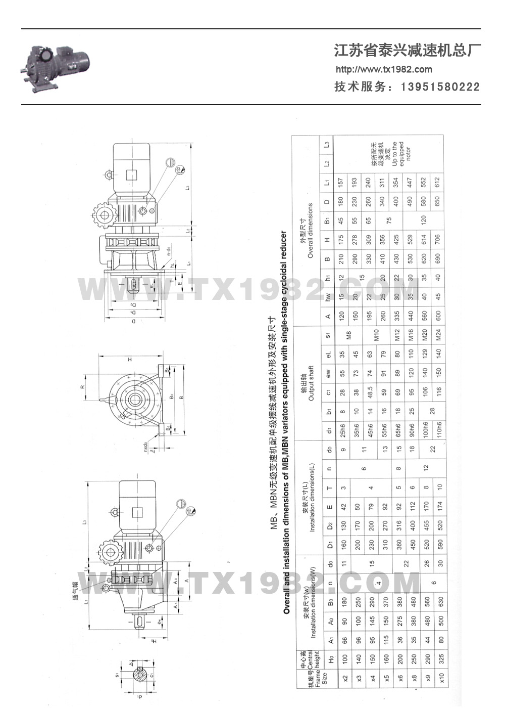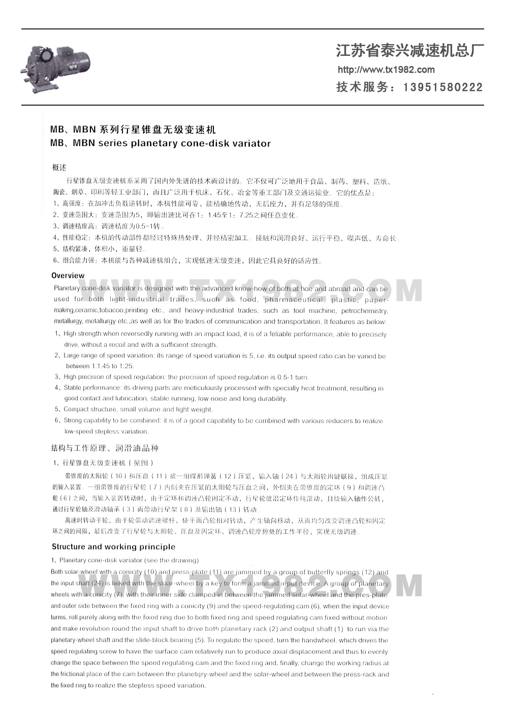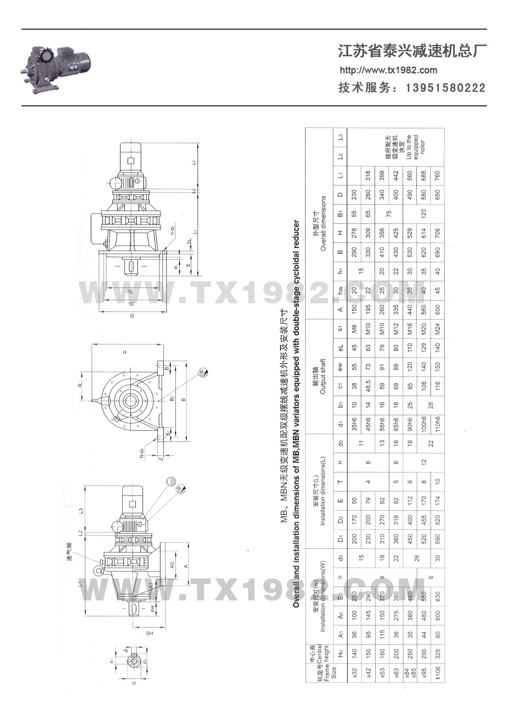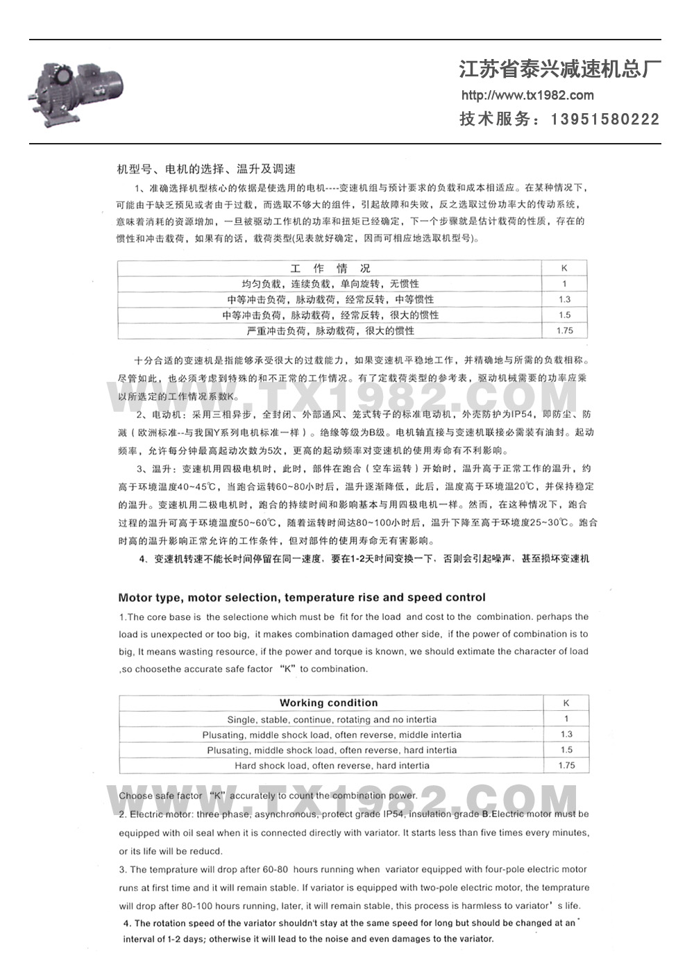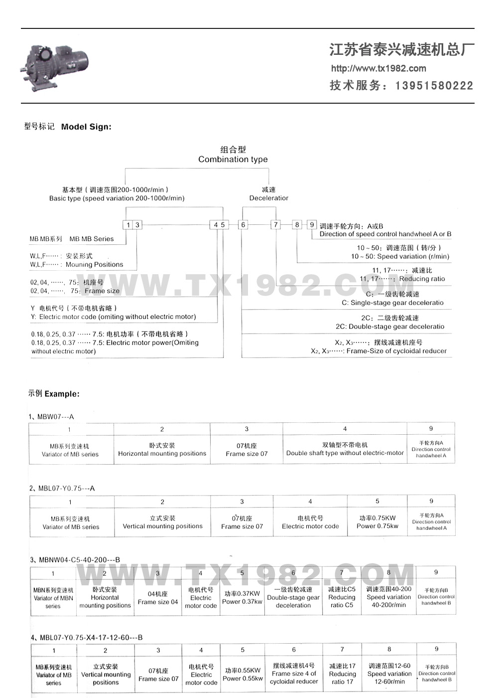 3.变速机带二级齿轮减速(i=6-25) :8-166r/min
