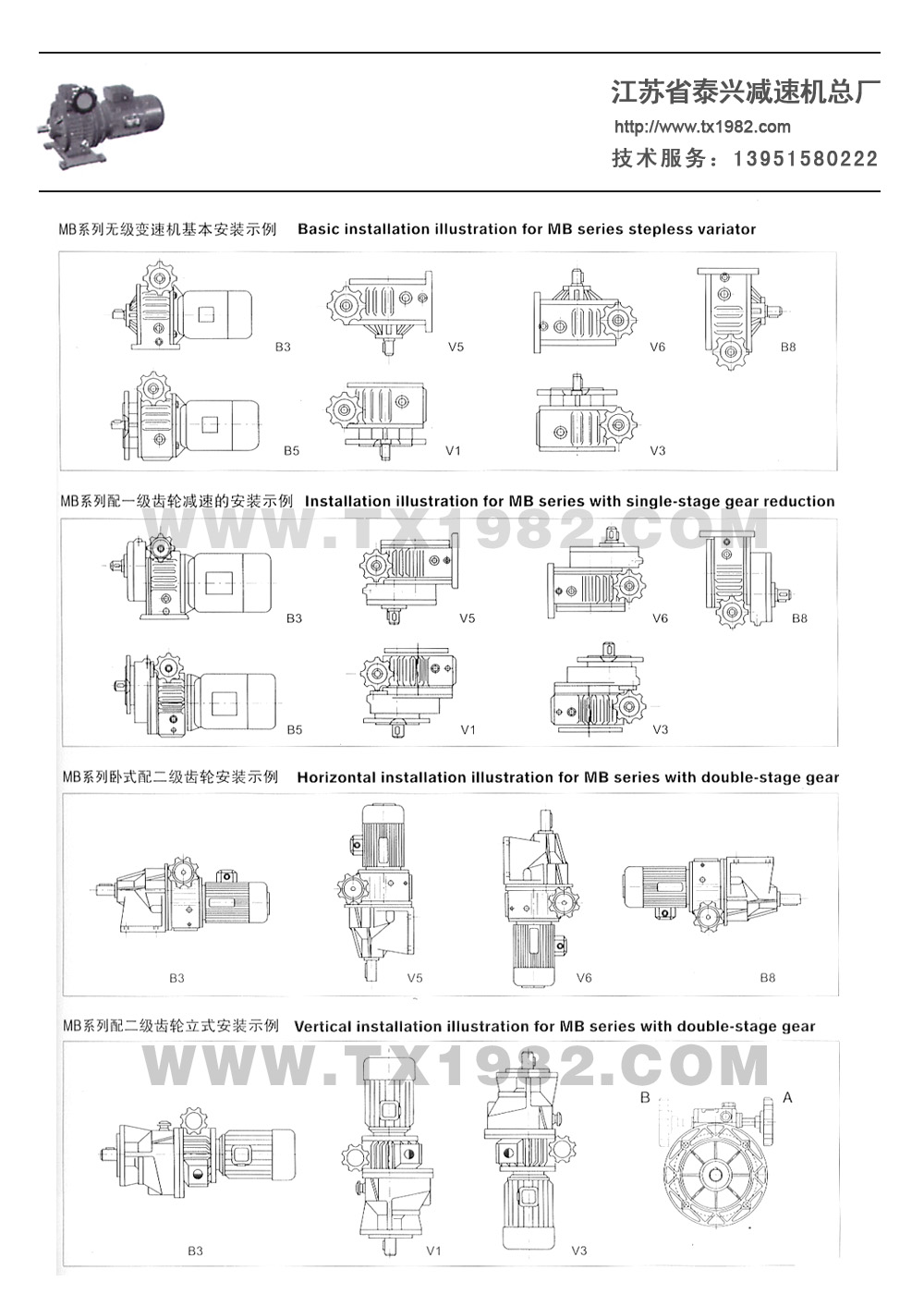 4、MB变速机最大的特点就是有效地能当各种齿轮减速机、摆线减速机、蜗轮减速机相结合使用,从而增大了输出转矩和实现了各种不同场合的最低和最高输出转速,具有良好的适应性。