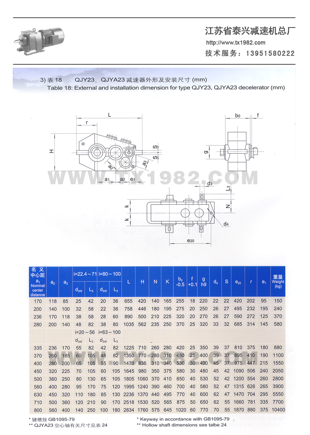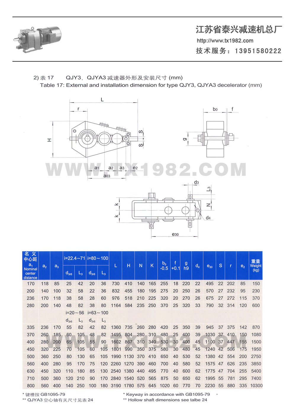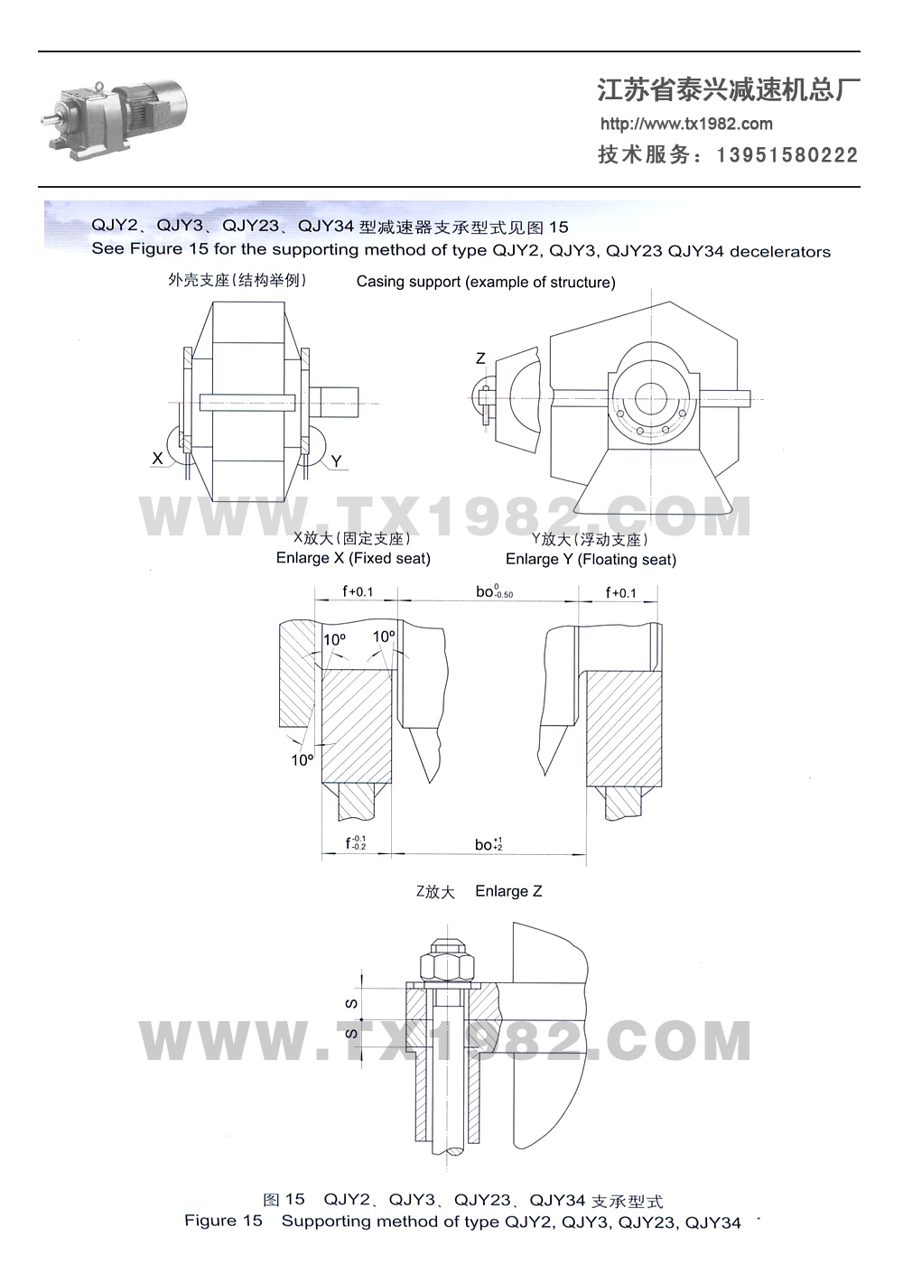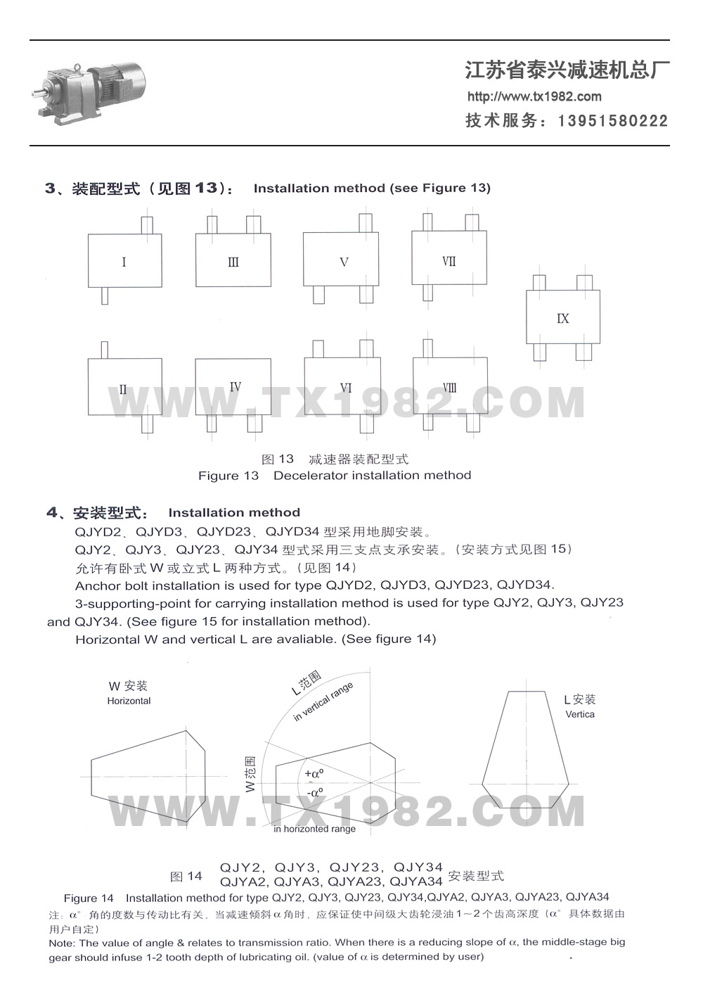QJY系列减速器为根据市场需求开发的硬齿面起重机减速器,全系列包括QJY(三支点支承式)、QJYD(地脚安装)、QJYA(空心轴式)三大类十二种基本形式。该系列减速器齿轮采用低碳合金钢,齿面渗碳淬硬,磨削成形,具有承载能力大(较QJR、QJS减速器提高1.8~2.4倍)、传动效率高、使用可靠、寿命长等优点。 QJY系列减速器适用于起重机的各有关机构,也可用于运输、冶金、矿山、化工、轻工等各种机械设备的传动机构中。