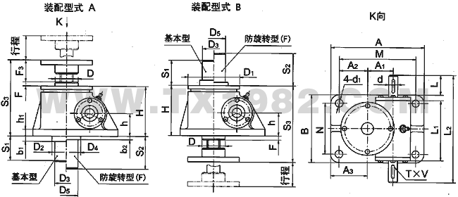 1型结构有基本型、防旋转型(F)和带防护罩型(Z);