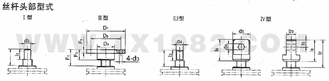 1型结构型式的丝杆头部分为Ⅰ型(圆柱型)、Ⅱ型(法兰型)、Ⅲ型(螺纹型)、Ⅳ型(扁头型)四种型式;
