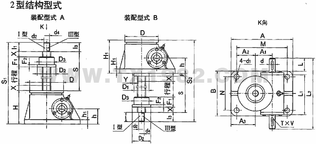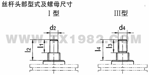 2型结构型式的丝杆头部分为Ⅰ型(圆柱型)、Ⅲ型(螺纹型)二种型式。