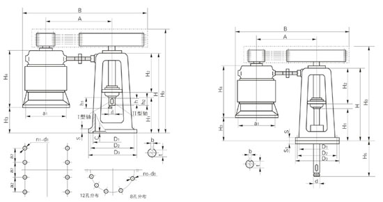出轴型式(Ⅰ型为夹壳型,Ⅱ型为普通型)